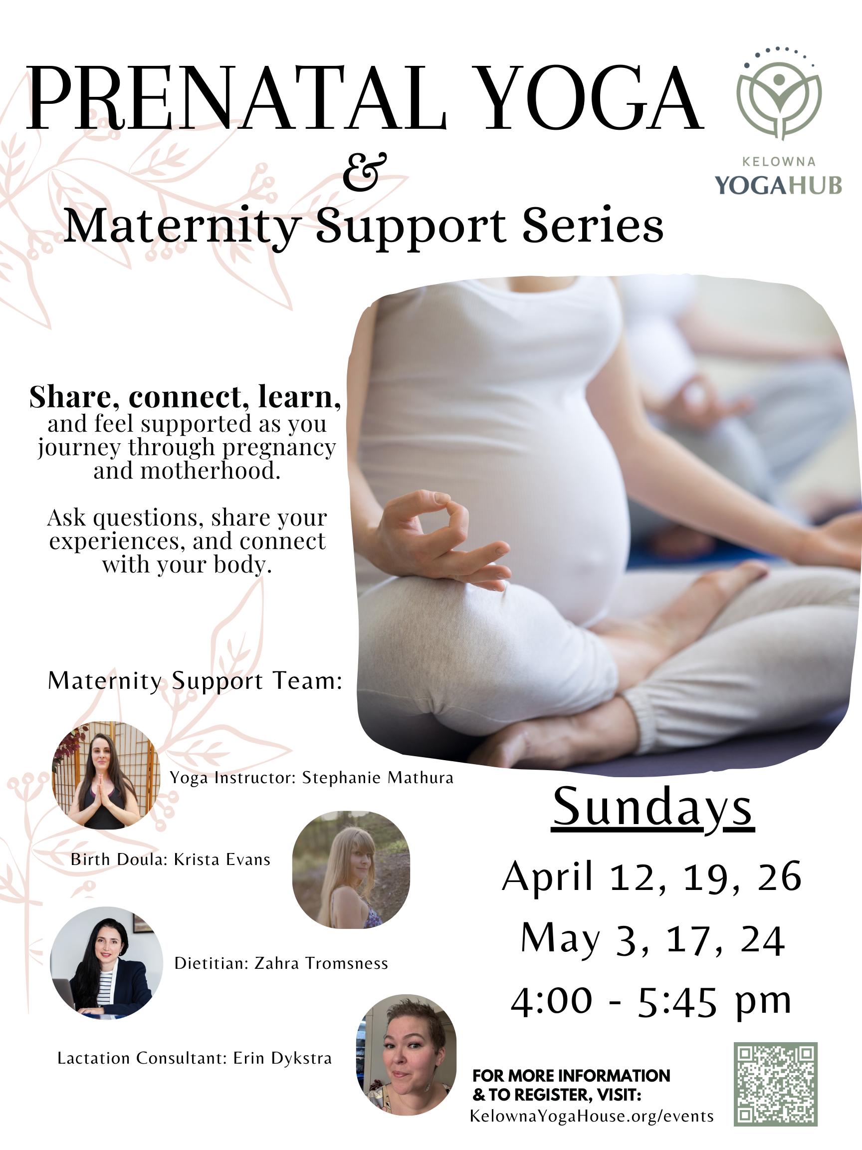 Kelowna Yoga Hub welcomes expecting mothers to join this Prenatal Yoga and Maternity Support Series, where we’ll explore a variety of topics surrounding pregnancy, labour, and motherhood – with the guidance of maternity specialists – along with a gentle yoga class.
